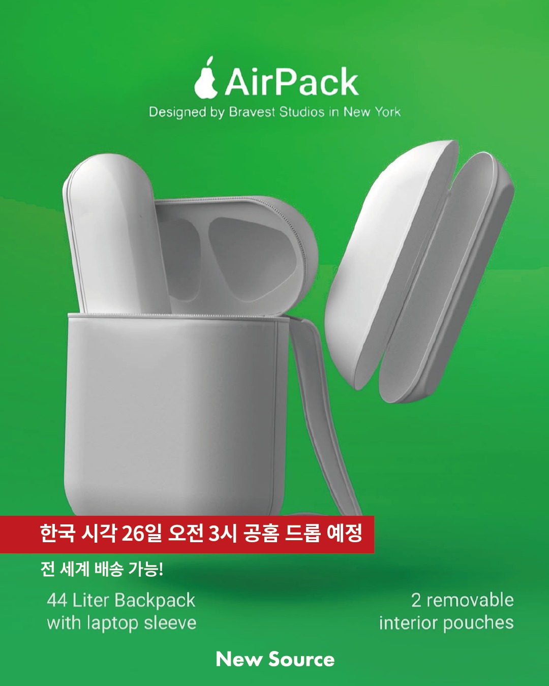 난 에어팟을 등으로 메🎒브레이비스트 스튜디오(@bravest)가 ‘에어팩’을 출시합니다. 44L 대용량 수납공간과 노트북 슬리브, 빠질 수 없는 유닛 모양의 탈부착 파우치가 특징인데요.🎧가격은 130$(한화 약 17만 8천원), 전 세계 배송 가능.✈️ 한국 시각 기준 26일 오전 3시, 브레이비스트 공식 홈페이지에서 만나볼 수 있습니다.Editor | Song jae hee📸bravest